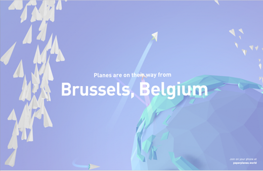 同樣的,Paper Planes在Google I/O 2016上將參與者聚集到一起,使用他們的移動設(shè)備在舞臺上的一塊50英尺的屏幕上一起“投擲”紙飛機。