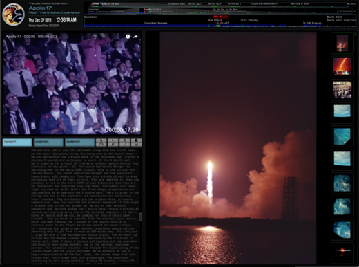 網(wǎng)絡(luò)技術(shù)也是致敬技術(shù)本身的好地方。加拿大的開發(fā)人員Ben Feist將阿波羅17號任務(wù)數(shù)字化,采用了類似控制室的布局。屏幕被分割成數(shù)據(jù)、視覺、文字和控件等,隨著火箭的發(fā)射“實時”更新。感覺有點緊張--這可能也正是1972年的人們所感受到的。誰會愿意在4.7英寸的屏幕上體驗登月呢?